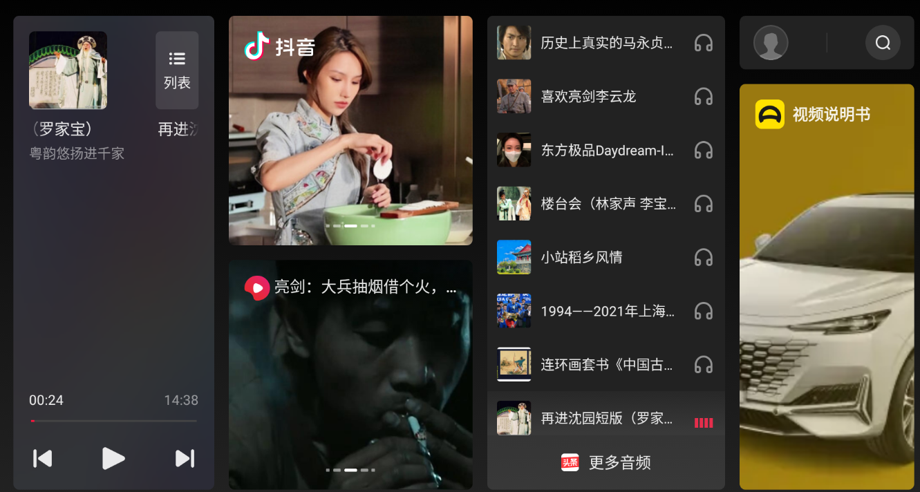 火山车娱APP集成了整个字节系的内容生态,包括抖音短视频、西瓜视频、今日头条的新闻资讯等,还可以通过AI文字转语音TTS的技术,自动转化成语音播放出来。通过“火山车娱”,乘客可以快速完成视频拍摄、拍照,并通过抖音进行分享。