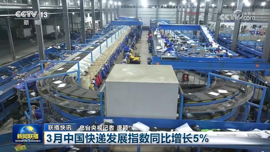 国家邮政局发布最新数据显示,3月中国快递发展指数为401.2,同比增长5%。预计3月快递业务量同比增长18%,快递业务收入预计同比增长10.5%。快递行业规模稳步增长,基础网络不断完善。