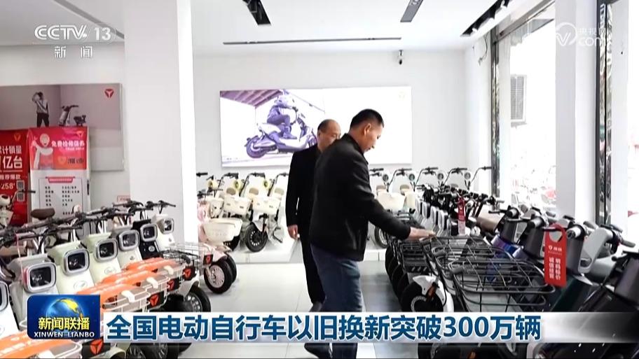 记者今天(4月14日)从商务部了解到,今年以来,我国电动自行车以旧换新进度持续加快,覆盖范围持续扩大,截至4月11日,电动自行车以旧换新交售旧车、换购新车各352.6万辆;已有超350万名消费者申请了电动自行车以旧换新补贴,累计申请补贴达24.1亿元。