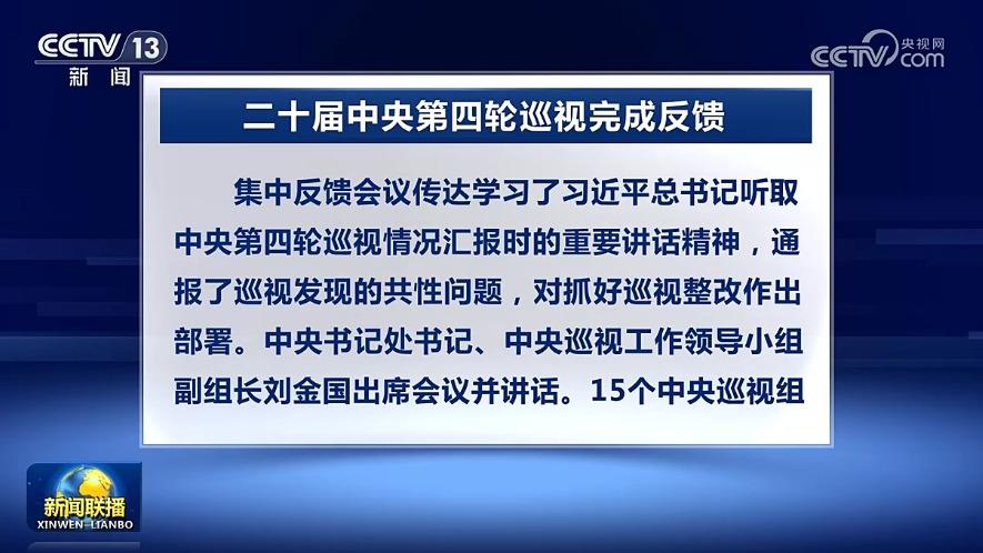 根据党中央部署,二十届中央第四轮巡视反馈工作近日全部完成。本轮巡视反馈采取集中反馈和巡视组“一对一”反馈相结合的方式进行。