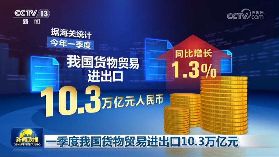 据海关统计,今年一季度,我国货物贸易进出口10.3万亿元人民币,同比增长1.3%。其中,出口6.13万亿元,增长6.9%;进口4.17万亿元,下降6%。我国进出口规模连续8个季度超10万亿元。我国民营企业进出口5.85万亿元,增长5.8%,占我国进出口总值的56.8%,较去年同期提升2.4个百分点。同期,外商投资企业进出口2.99万亿元,增长0.4%,占进出口总值的29%。我国对共建“一带一路”国家进出口5.26万亿元,增长2.2%,高出整体0.9个百分点,占进出口总值的51.1%。其中,对东盟进出口1.71万亿元,增长7.1%。