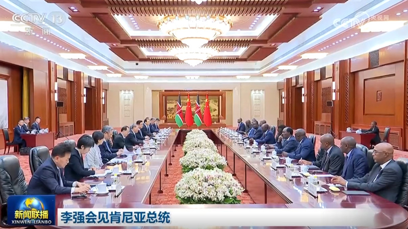 国务院总理李强4月23日下午在北京人民大会堂会见来华进行国事访问的肯尼亚总统鲁托。