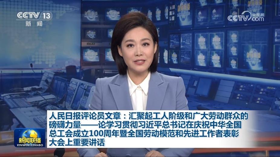 今天(4月29日)出版的《人民日报》发表评论员文章,题目是《汇聚起工人阶级和广大劳动群众的磅礴力量——论学习贯彻习近平总书记在庆祝中华全国总工会成立100周年暨全国劳动模范和先进工作者表彰大会上重要讲话》。