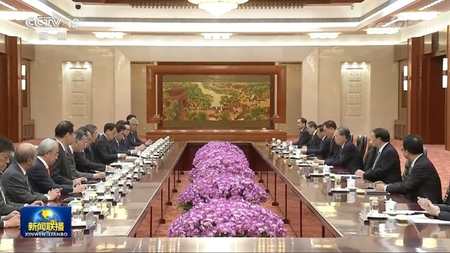 全国人大常委会委员长赵乐际29日在北京会见日本日中友好议员联盟会长、自民党干事长森山裕。