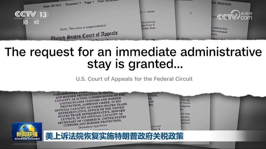 美国联邦巡回上诉法院29日批准特朗普政府的请求,暂时搁置美国国际贸易法院此前一天做出的禁止执行美国对多国加征关税措施的行政令的裁决。美国联邦巡回上诉法院在裁决书中说,在其审议相关文件期间,美国国际贸易法院相关裁决和永久性禁令将暂时中止,直至另行通知。美国媒体称,当前涉及关税的司法裁决使得形势“乱上加乱”。