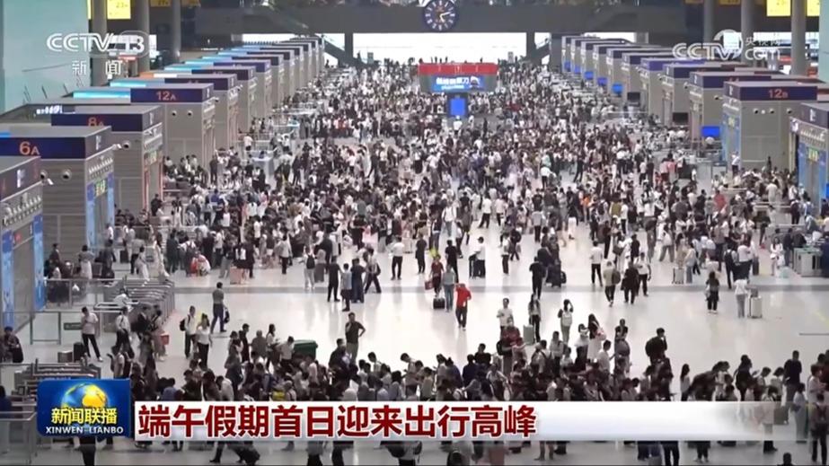 记者从交通运输部了解到,端午假期第一天,预计全社会跨区域人员流动量超2.29亿人次,比去年端午假期首日增长10.2%。
