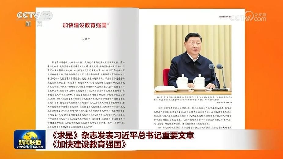 1.《求是》杂志发表习近平总书记重要文章《加快建设教育强国》;