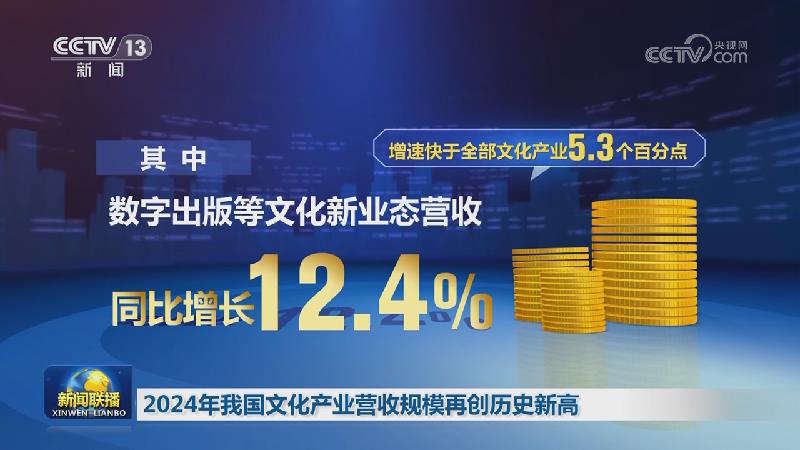 国家统计局今天(6月27日)发布的数据显示,2024年,我国文化产业规模持续扩大,全国文化产业实现营业收入191423亿元,比上年增长7.1%,营收规模再创历史新高。其中,数字出版等文化新业态营收同比增长12.4%,增速快于全部文化产业5.3个百分点。