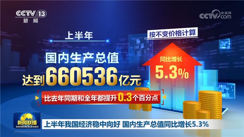 10. 上半年我国经济稳中向好 国内生产总值同比增长5.3%