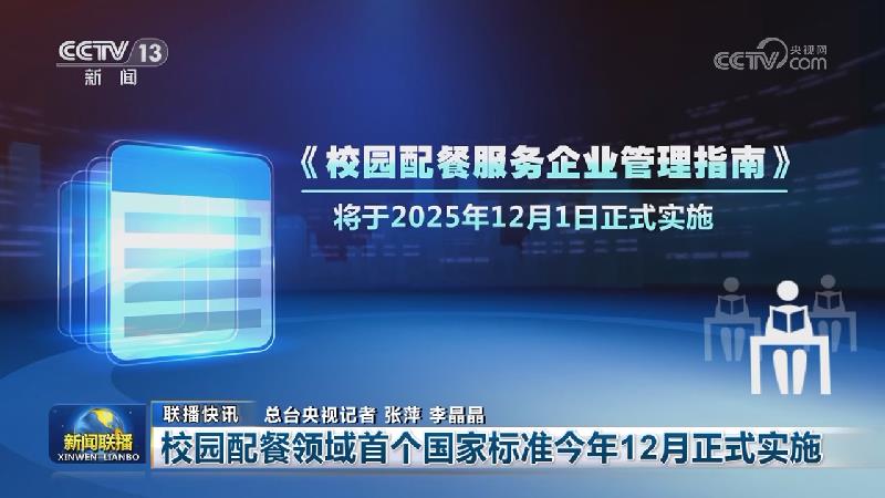 市场监管总局今天(7月21日)发布首个针对校园配餐的国家标准《校园配餐服务企业管理指南》,将于2025年12月1日正式实施。标准细化了校园配餐过程中食谱编制、原料采购、加工制作、备餐配送等环节管理要求,适用于为中小学、幼儿园学生提供学生餐制作及配送服务的企业。