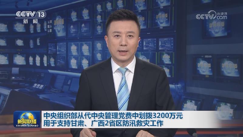 4. 中央组织部从代中央管理党费中划拨3200万元用于支持甘肃、广西2省区防汛救灾工作