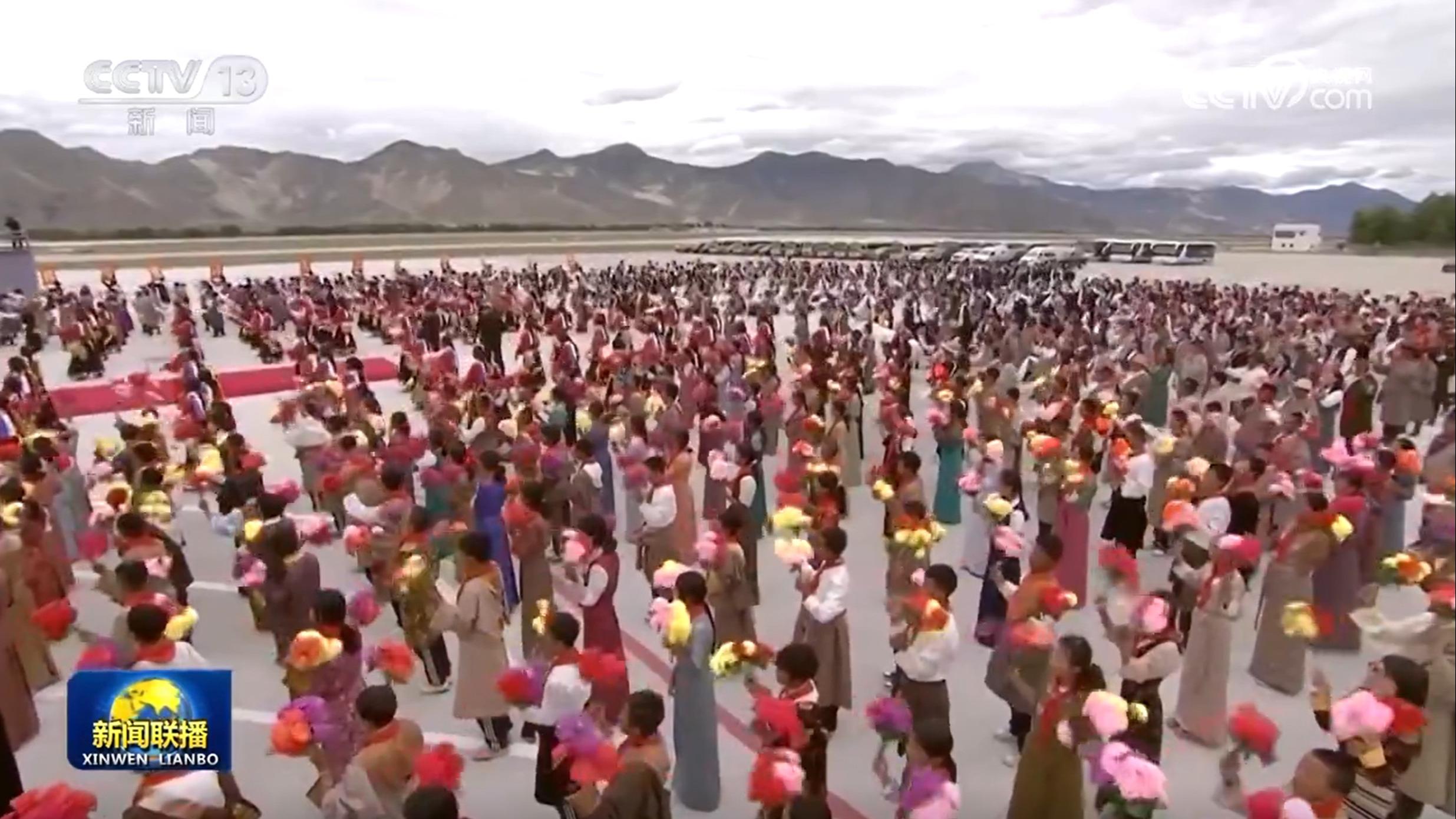 习近平离开西藏时,各族群众纷纷来到拉萨市区的沿途道路两旁,挥舞红旗、手捧哈达,欢呼着向总书记问好,向总书记表达由衷的爱戴。拉萨贡嘎机场,身着节日盛装的干部群众挥舞着红旗和花束,载歌载舞,高喊“扎西德勒”,表达高原儿女对以习近平同志为核心的党中央的感激之情、对建设社会主义现代化新西藏的坚定信心。