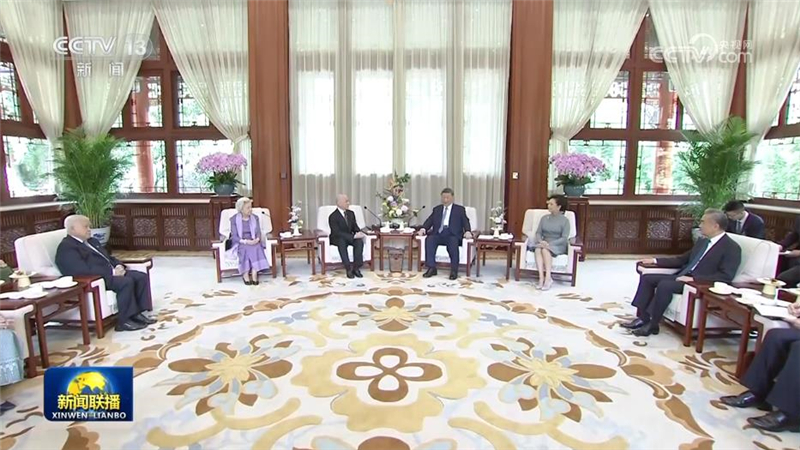 8月26日上午,国家主席习近平和夫人彭丽媛在中南海亲切会见柬埔寨国王西哈莫尼和太后莫尼列。