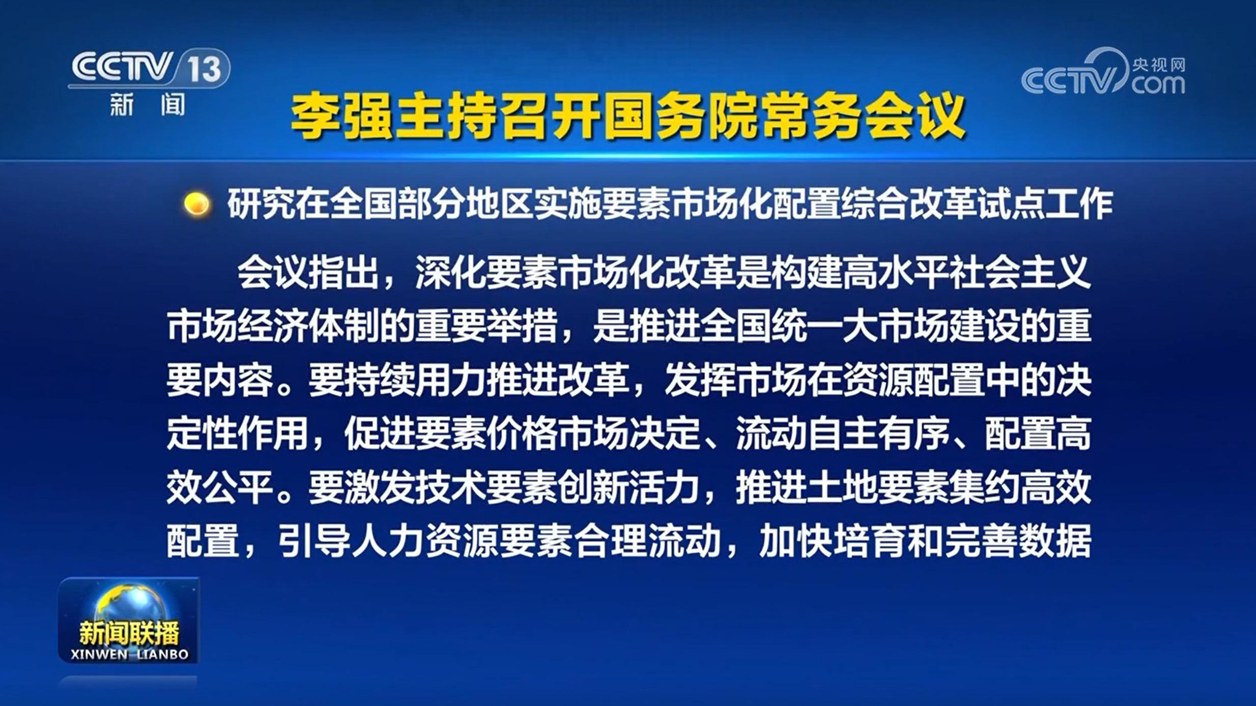 会议指出,深化要素市场化改革是构建高水平社会主义市场经济体制的重要举措,是推进全国统一大市场建设的重要内容。要持续用力推进改革,发挥市场在资源配置中的决定性作用,促进要素价格市场决定、流动自主有序、配置高效公平。要激发技术要素创新活力,推进土地要素集约高效配置,引导人力资源要素合理流动,加快培育和完善数据要素市场,增强资本要素服务实体经济能力,健全资源环境市场制度建设。要聚焦重点领域和关键环节推进改革试点,引导试点地区因地制宜大胆创新,开展差别化改革探索,加快破除体制机制障碍。要做好对试点工作的统筹协调和指导服务,及时进行总结评估,形成可复制可推广的经验做法。