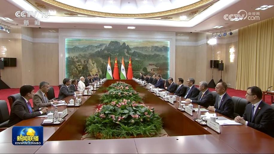 习近平指出,去年我们在喀山成功会晤,中印关系重启再出发,两国交往合作不断取得新进展。中国和印度是两大东方文明古国,是世界上人口最多的两个国家,也是全球南方重要成员,肩负着造福两国人民、促进发展中国家团结振兴、推动人类社会进步的重要责任。做睦邻友好的朋友、相互成就的伙伴,实现“龙象共舞”,应当是中印双方的正确选择。
