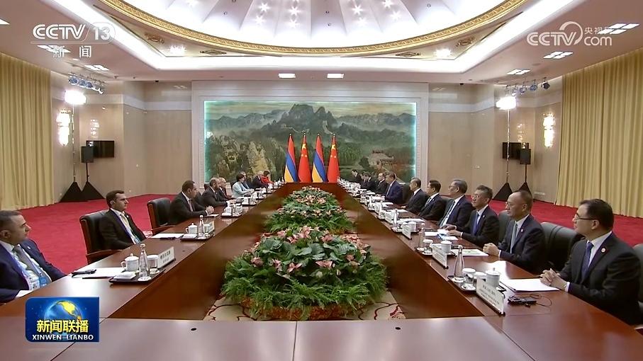 习近平强调,双方要高质量共建“一带一路”,加强互联互通,推进教育、科技、文化、旅游等交流,为两国人民创造更多福祉。中方支持亚美尼亚加入上海合作组织,愿同亚方一道,践行真正的多边主义,携手推动构建人类命运共同体。