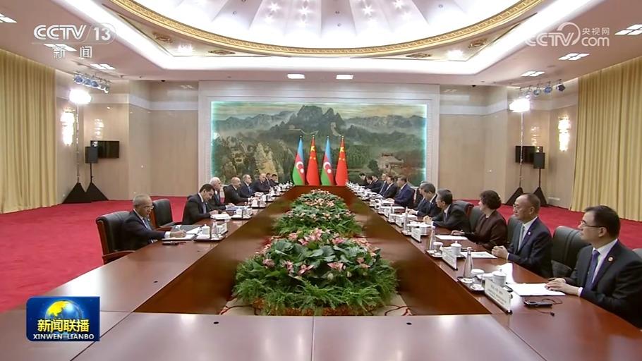 习近平指出,中国同阿塞拜疆是好朋友、好伙伴。建交33年来,两国传统友谊日益深化,政治互信持续巩固,互利合作成果丰硕。今年4月,我们宣布中阿建立全面战略伙伴关系,开启两国全方位合作新篇章。中阿两国是发展振兴的同路人,中方愿同阿方一道,保持双边合作蓬勃发展势头,共创两国共赢发展新未来。