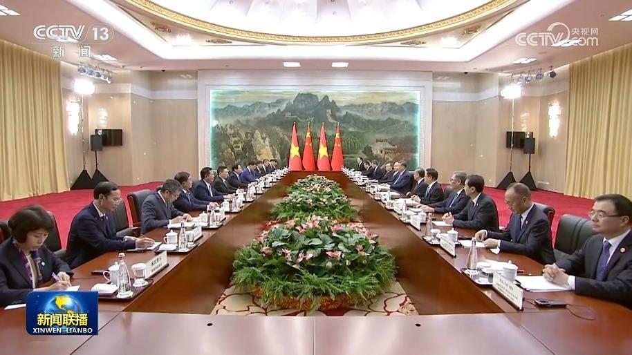 习近平指出,我今年4月对越南进行国事访问,双方就新形势下推进中越命运共同体建设达成重要共识。两国各部门各地方要加紧落实,推动中越全面战略合作取得更多实质性成果。面对加速演进的百年变局和变乱交织的国际形势,中越要坚定道路自信和制度自信,加强团结协作,推动中越命运共同体航船始终沿着正确方向稳步前行。