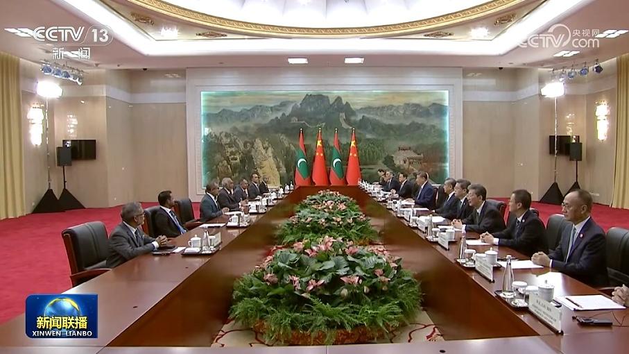 习近平强调,中方将继续支持马尔代夫维护国家主权、独立和领土完整,探索符合本国国情的发展道路。愿同马方加强政党、立法机构、政府等各方面交往,增进相互了解和信任,促进两国人民相知相亲。持续深化务实合作,落实好中马自由贸易协定,开展渔业、海洋科考、环境保护、防灾减灾等合作。加强沟通和协作,维护共同战略利益和国际公平正义,携手构建人类命运共同体。