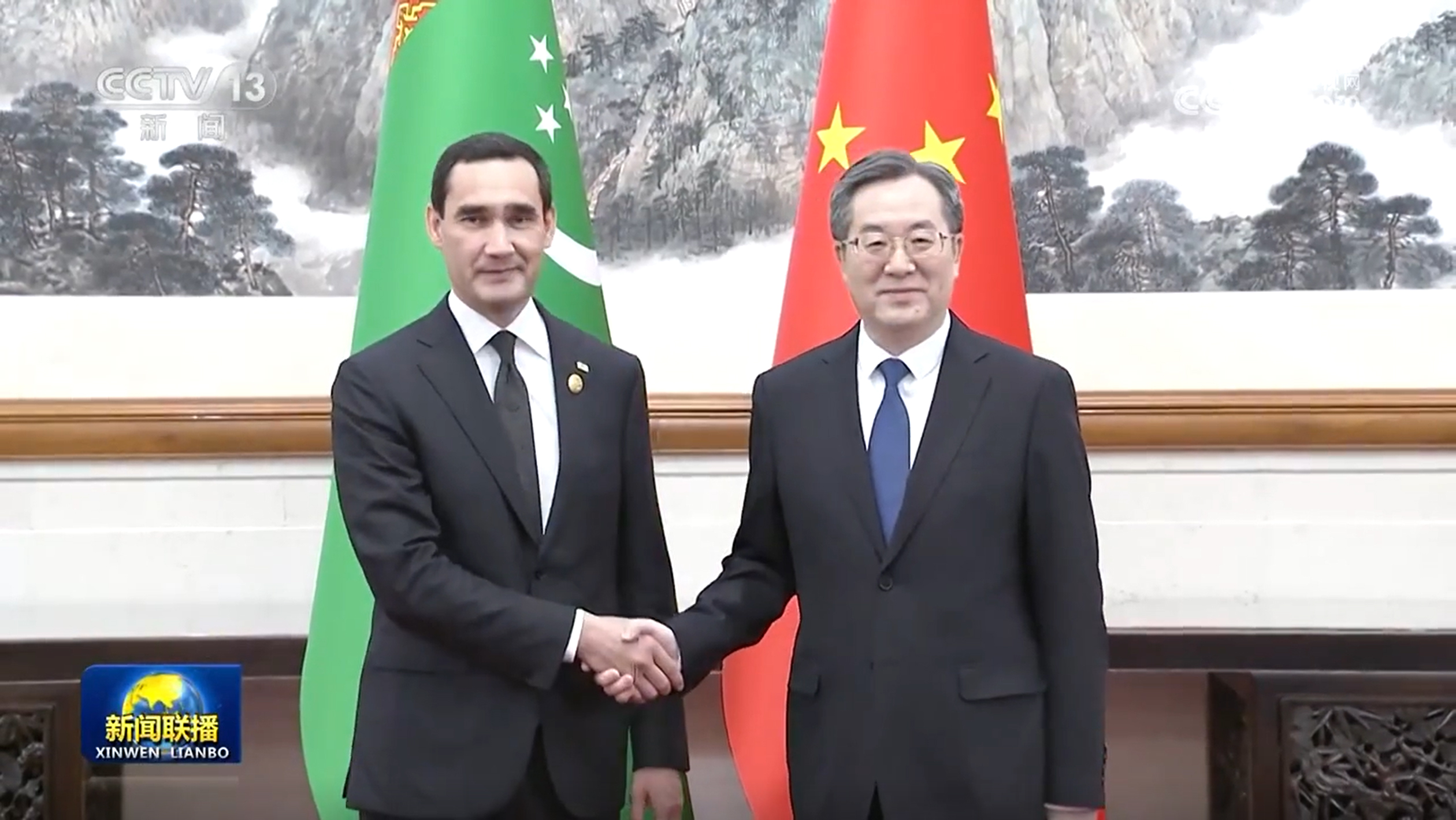 中共中央政治局常委、国务院副总理丁薛祥2日在北京会见来华出席2025年上海合作组织峰会和纪念中国人民抗日战争暨世界反法西斯战争胜利80周年活动的土库曼斯坦总统别尔德穆哈梅多夫。