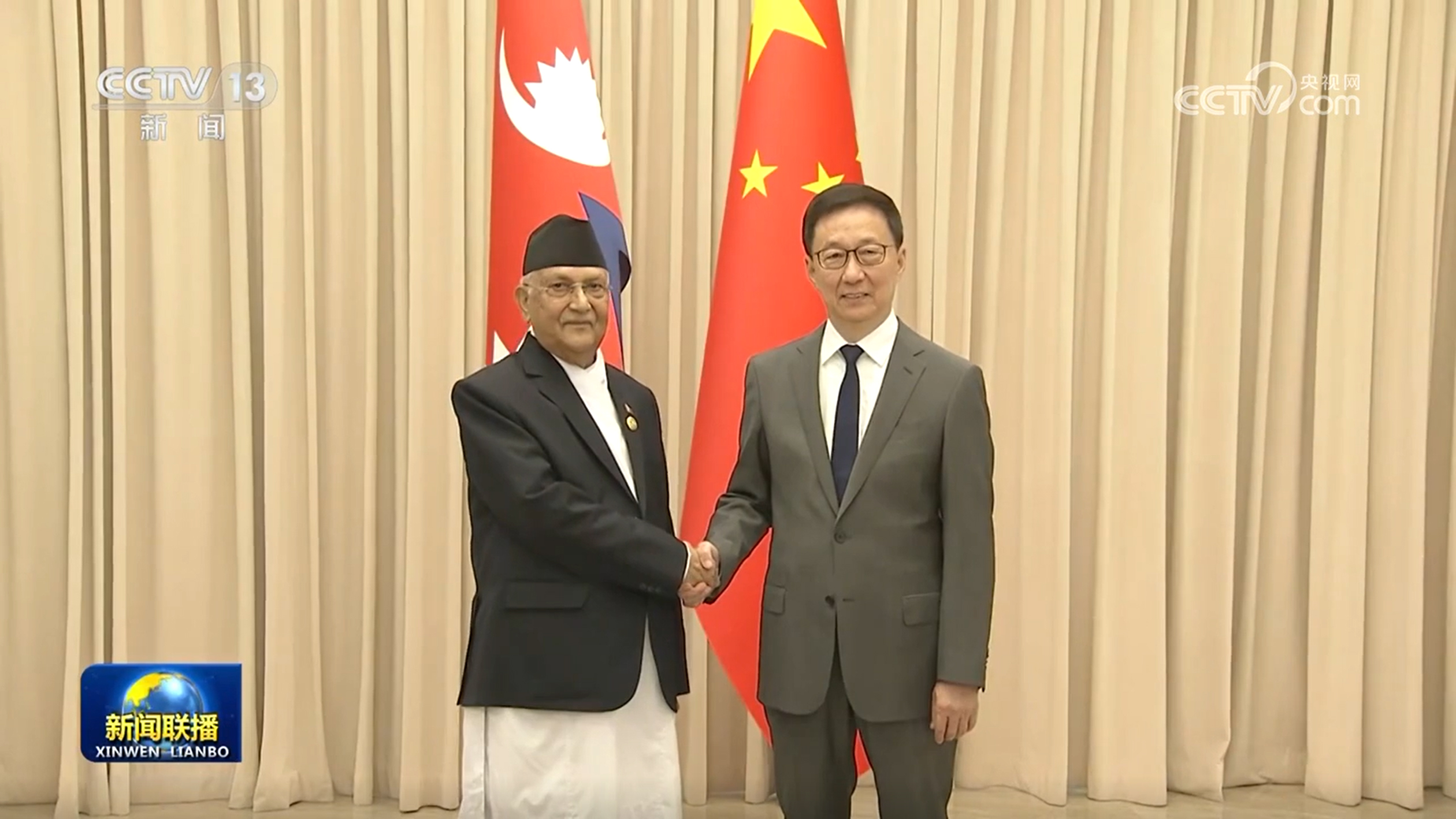 9月2日,国家副主席韩正在北京会见来华出席2025年上海合作组织峰会和纪念中国人民抗日战争暨世界反法西斯战争胜利80周年活动的尼泊尔总理奥利。