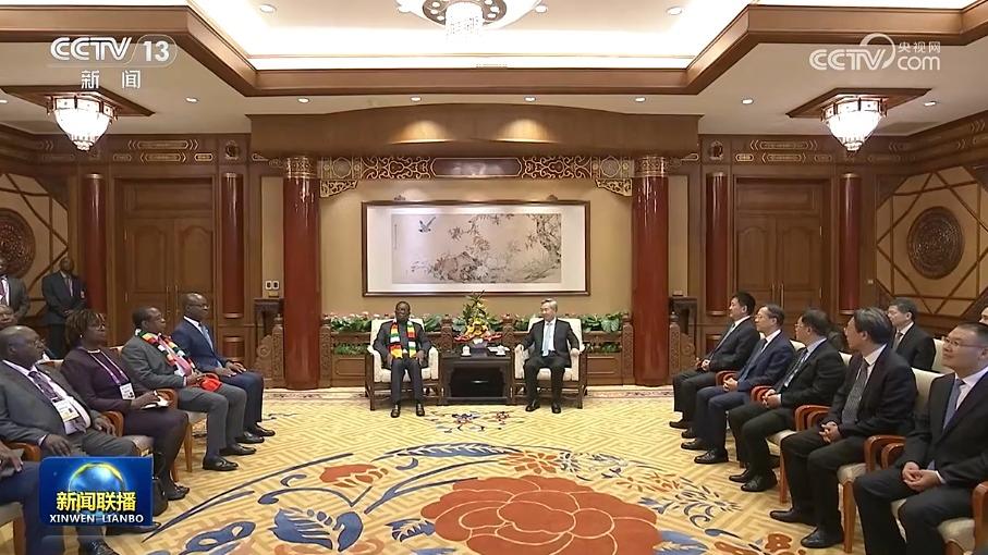 中共中央政治局常委、中央纪委书记李希4日在北京会见来华出席纪念中国人民抗日战争暨世界反法西斯战争胜利80周年活动的津巴布韦总统姆南加古瓦。