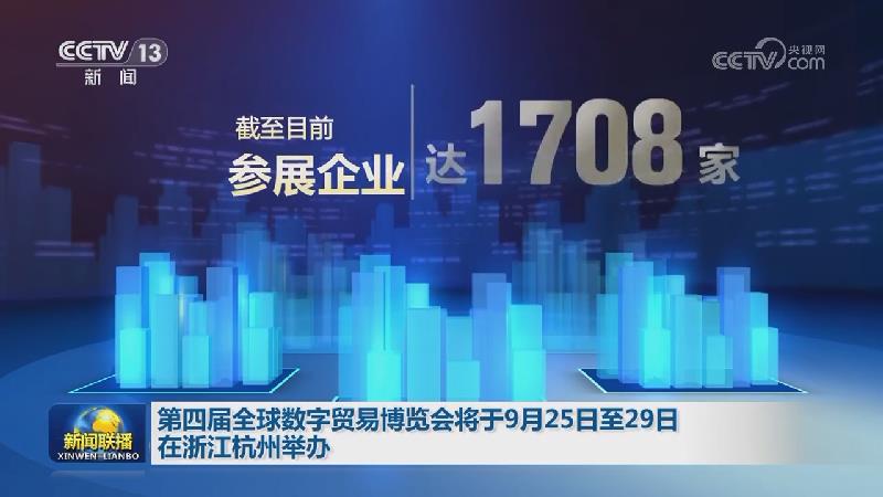 国务院新闻办公室今天(9月11日)举行新闻发布会,商务部、浙江省等相关负责人介绍,第四届全球数字贸易博览会将于9月25日至29日在浙江杭州举办,将设置1个“未来科技竞技场”主展区和7个特色展区,发布百余项中国首发、亚洲首秀、全球首展。截至目前,参展企业达1708家,其中国际展商367家,均超上一届;参会国际客商10350人,比上届增长54%。