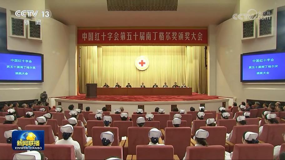 第50届南丁格尔奖颁奖大会12日上午在北京人民大会堂举行。国家副主席、中国红十字会名誉会长韩正为中国获奖者颁奖。