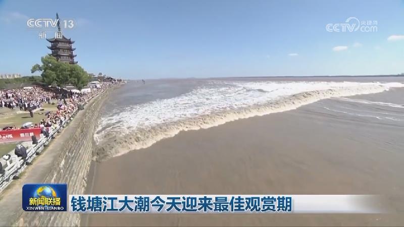 今天(10月9日)是农历八月十八,钱塘江大潮迎来最佳观赏期。上午10点50分左右,钱江潮起潮;12点半左右,大潮抵达海宁塔山坝。在宽达7公里的江面上,钱江潮不断积蓄力量逆流而上。在海宁盐官,大潮在占鳌塔前奔腾而过,横贯江面的“一线潮”犹如千万匹白色战马齐头并进,潮头高度达到了1.75米。当钱江潮抵达海宁老盐仓观潮点时,大潮与大坝相遇,瞬间激起十多米高的冲天水幕。随后,调转方向骤然转身,形成气势磅礴的回头潮。八月十八潮,壮观天下无。据统计,今天,海宁钱塘江沿岸观潮游客超14万人。