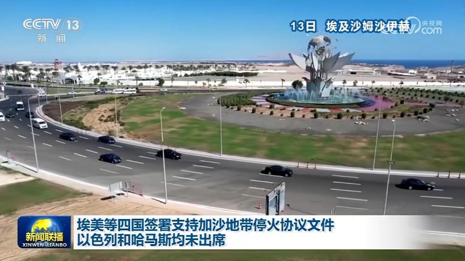 埃及沙姆沙伊赫峰会13日举行,讨论加沙地带停火协议第一阶段,包括推动加沙地带全面停火、实现以色列撤军以及人道主义援助进入加沙等。埃及总统塞西强调,“两国方案”是实现巴以和平共存的唯一途径。埃及、美国、土耳其和卡塔尔领导人当天签署支持加沙地带停火协议的文件。