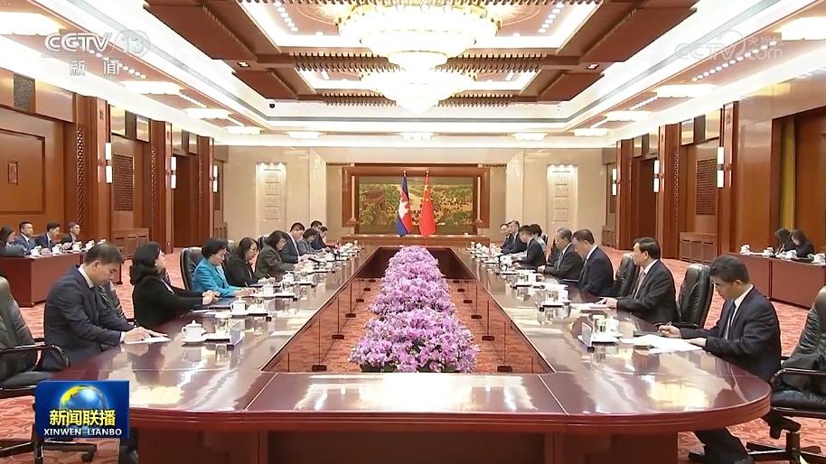 赵乐际表示,今年4月,习近平主席成功对柬进行国事访问,中柬关系定位提升为新时代全天候命运共同体。中方愿同柬方一道,落实好两国领导人重要共识,巩固政治互信,拓展互利合作,密切人文交流,加强执法合作和多边协作。中国全国人大愿同柬国会深化立法、监督等经验交流,为务实合作提供法律保障。加强在妇女减贫、疾病防治等方面交流合作,为全球妇女事业作出贡献。