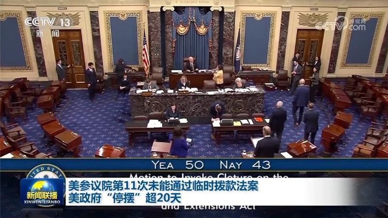 11. 美参议院第11次未能通过临时拨款法案 美政府“停摆”超20天