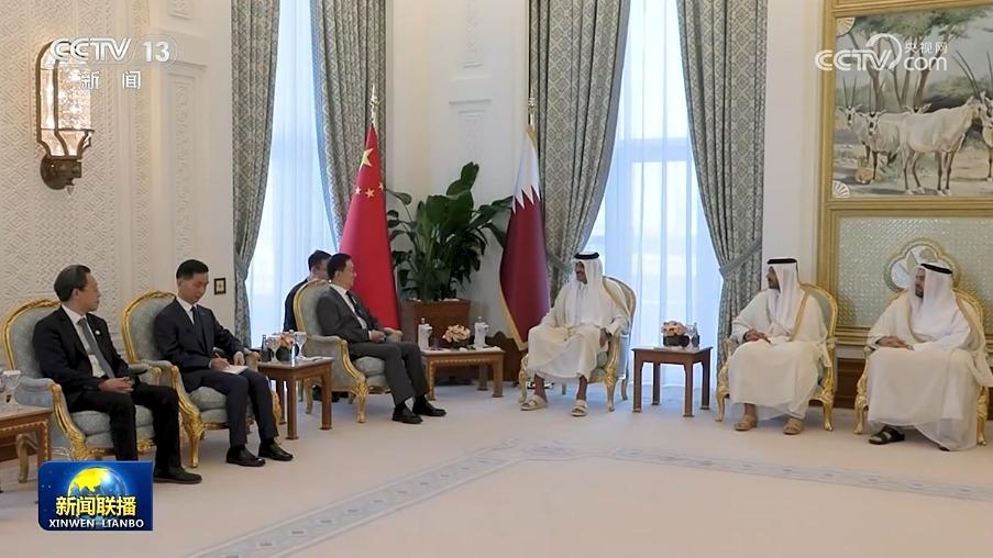 韩正转达习近平主席对塔米姆的亲切问候,表示中方高度重视中卡关系,去年7月,习近平主席同殿下会面,就深化中卡关系达成重要共识。不久前中共二十届四中全会审议通过“十五五”规划建议,中国致力于通过实现自身发展更好造福世界,这将为中卡合作提供宝贵机遇。中方愿同卡方落实好两国元首重要共识,保持高层交往,深化能源、人工智能等领域合作,推动中卡关系不断迈上新台阶。