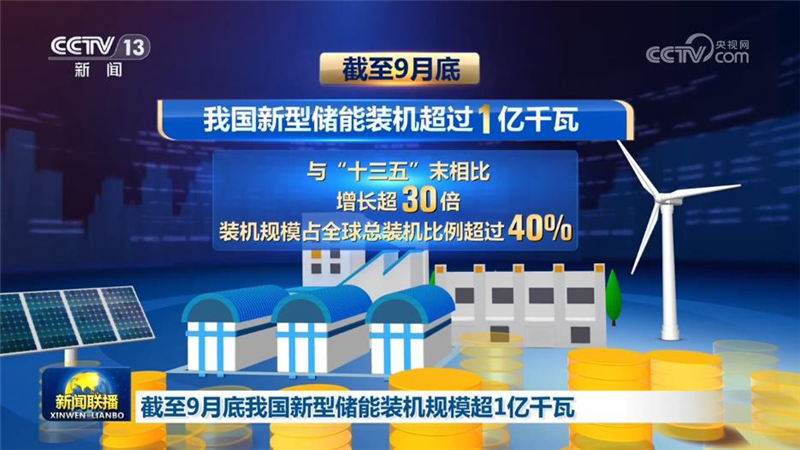记者从国家能源局了解到,截至9月底,我国新型储能装机超过1亿千瓦,与“十三五”末相比增长超30倍,装机规模占全球总装机比例超过40%,已跃居世界第一。