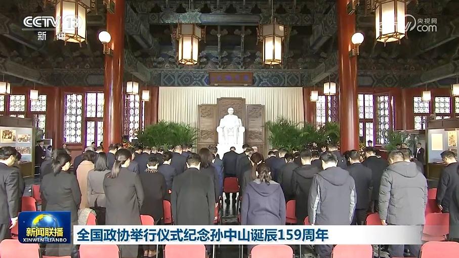 全国政协12日上午在北京中山公园中山堂举行仪式,纪念伟大的民族英雄、伟大的爱国主义者、中国民主革命的伟大先驱孙中山先生诞辰159周年。