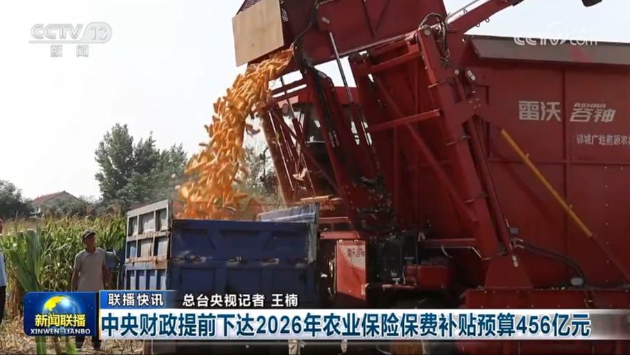 为支持农业保险发展,更好地服务保障国家粮食安全,财政部日前发布通知,提前下达中央财政农业保险保费补贴,2026年预算456亿元。