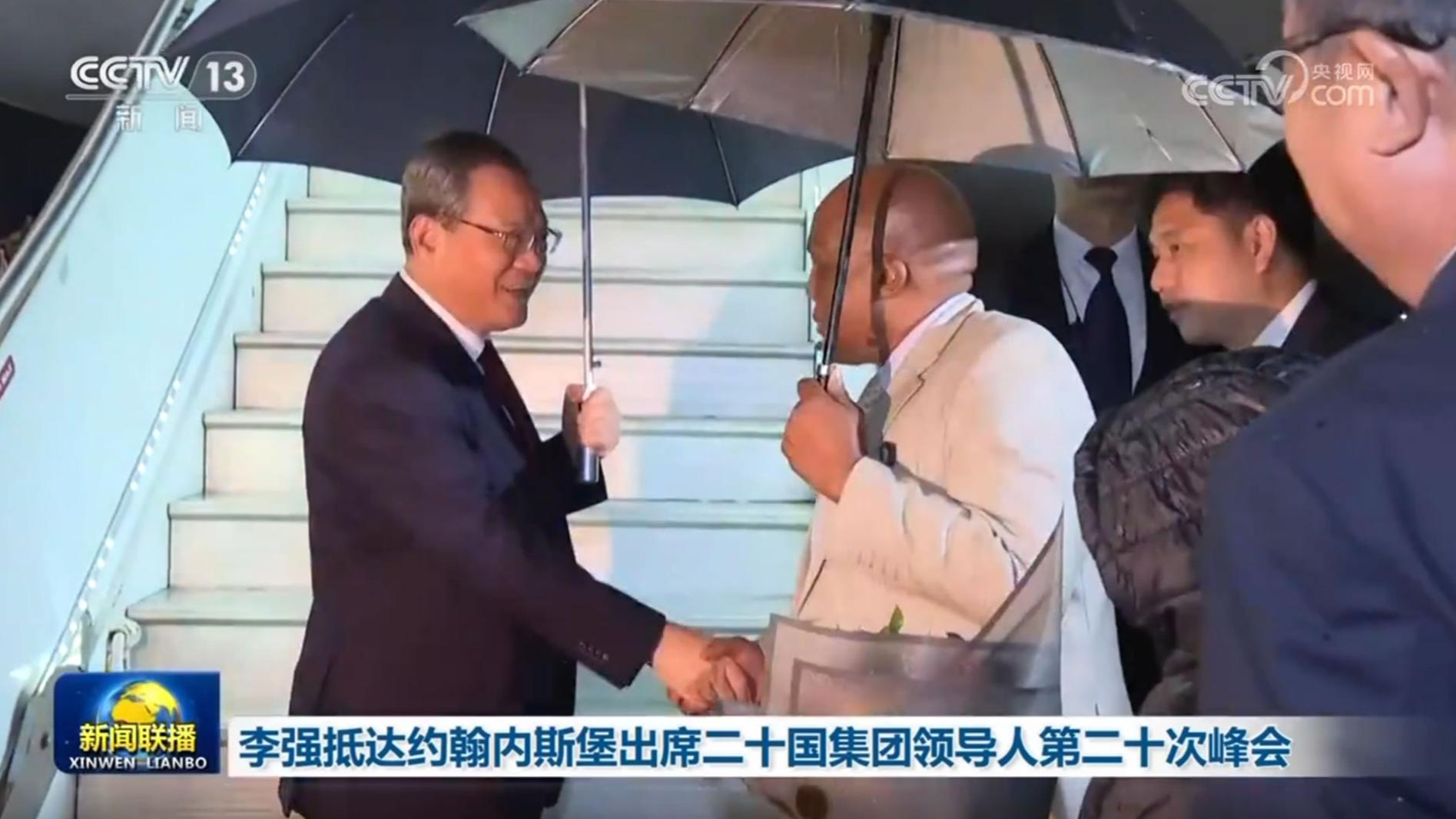 当地时间11月20日晚,应南非政府邀请,国务院总理李强乘包机抵达约翰内斯堡国际机场,出席二十国集团领导人第二十次峰会。