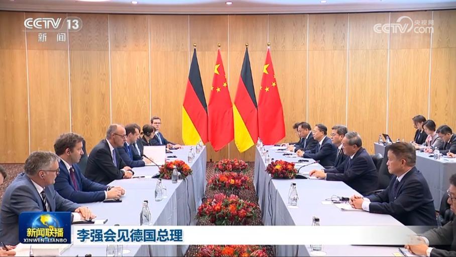 当地时间11月23日,国务院总理李强在约翰内斯堡会见德国总理默茨。