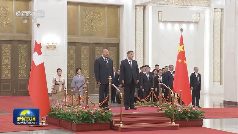 国家主席习近平25日上午在人民大会堂北大厅举行仪式,欢迎汤加王国国王图普六世对我国进行国事访问。