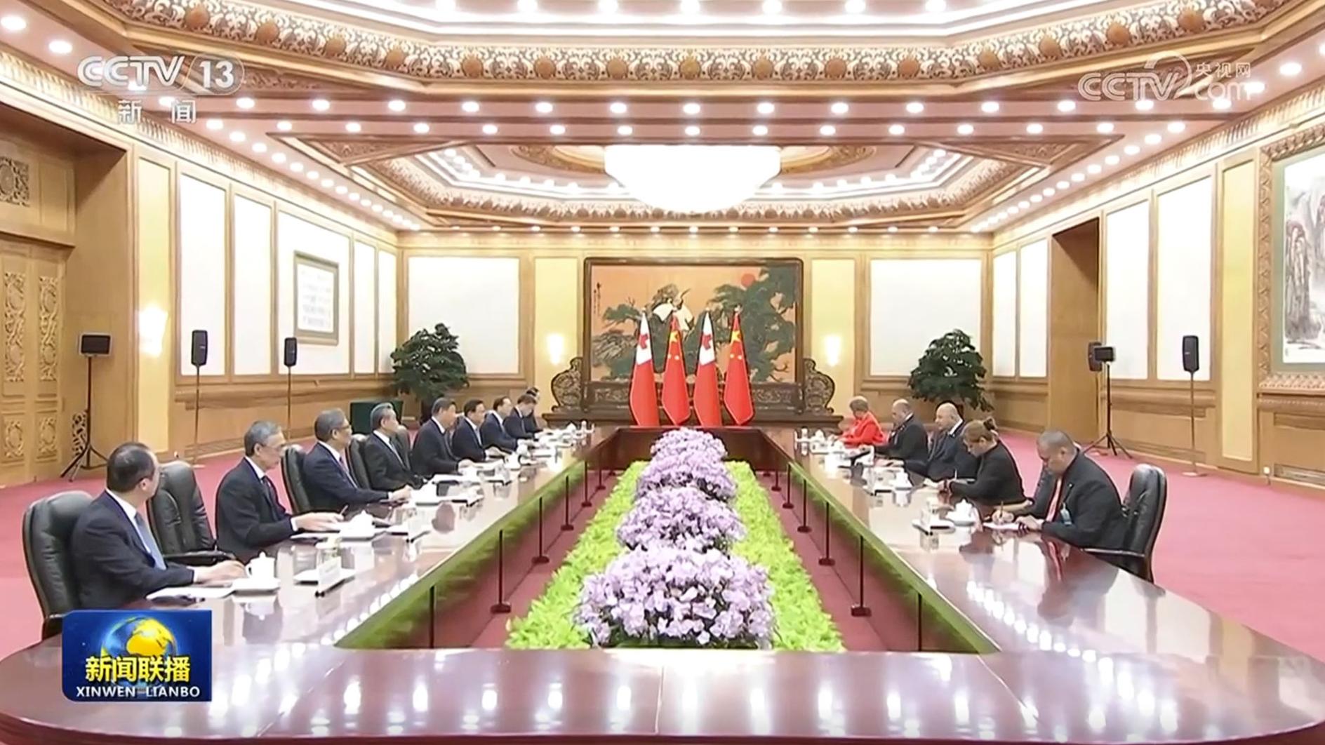 习近平强调,中共二十届四中全会对中国未来5年经济社会发展作出顶层设计和战略擘画。中国将聚焦高质量发展,进一步全面深化改革,扩大高水平对外开放,同世界各国共享发展机遇。中方提出四大全球倡议,就是要推动世界各国共谋发展、共享和平。愿同汤加共同践行四大全球倡议,为两国人民创造更加美好的生活,共建中国-太平洋岛国命运共同体,推动构建人类命运共同体。