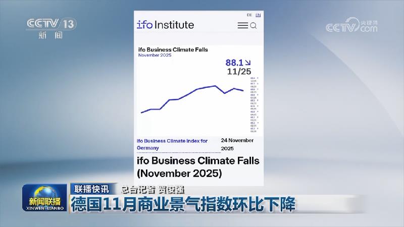 德国伊弗经济研究所24日公布的数据显示,经季节调整后,德国11月商业景气指数从上月的88.4点降至88.1点,继9月出现年内首次下滑之后,该指数本月再度下行。其中,构成该商业景气指数四项指标中的三项——制造业、建筑业和贸易指标均下降。市场分析人士指出,美国加征关税、欧元走强等因素加剧德国出口压力,年底经济仍呈现停滞态势。