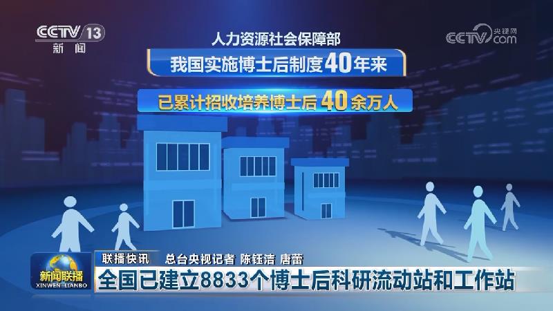 记者从人力资源社会保障部了解到,我国实施博士后制度40年来,已累计招收培养博士后40余万人,建立8833个博士后科研流动站和工作站,基本覆盖全部重点高校、主要科研院所和经济社会发展各领域。