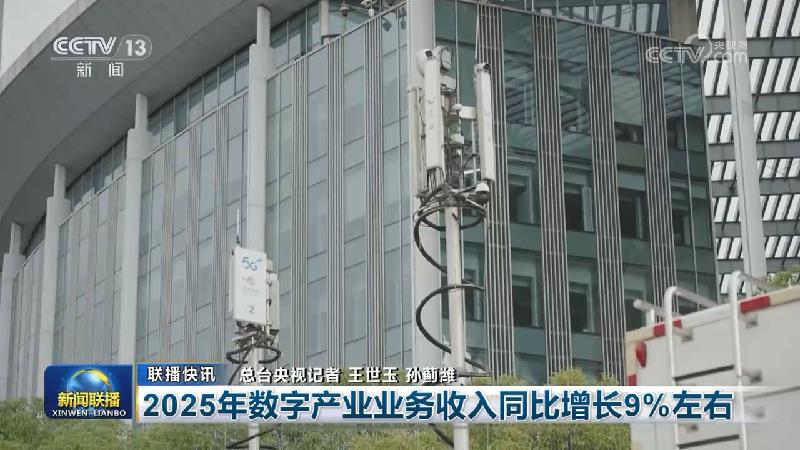工业和信息化部数据显示,2025年我国数字产业业务收入同比增长9%左右,信息通信业服务经济社会发展能力持续增强,电信业务总量和软件业务收入分别同比增长9%和12%左右。