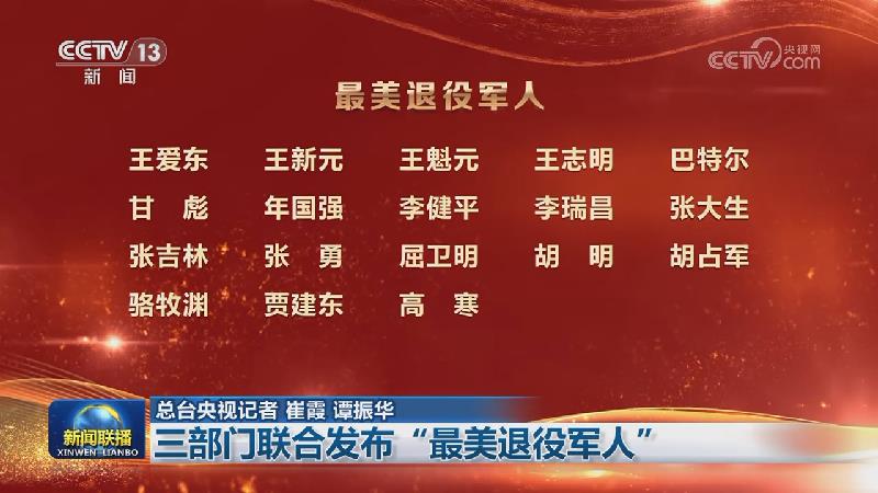 今天(12月27日),中央宣传部、退役军人事务部、中央军委政治工作部向全社会公开发布“最美退役军人”。