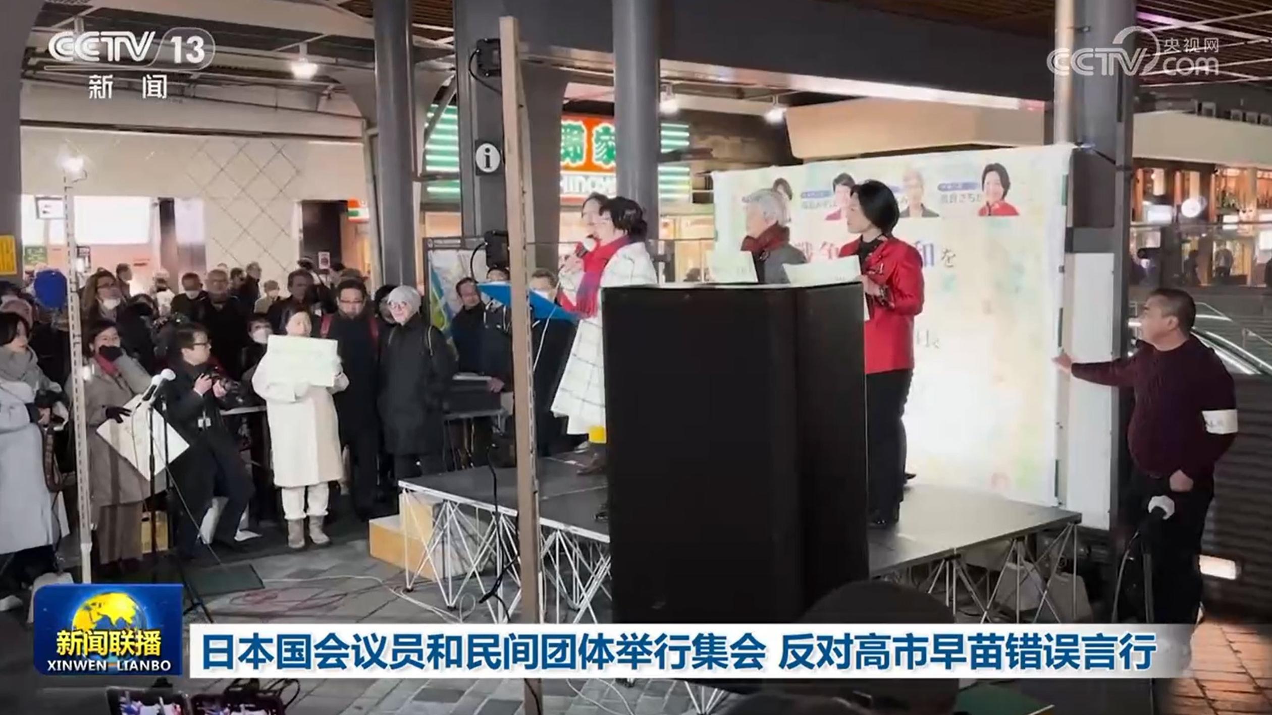 日本多名国会议员、民间团体26日在东京举行集会,对首相高市早苗的错误言论以及高市政权持续推进军备扩张等行为表达强烈反对,要求高市政权撤回错误言行,尊重和平宪法,避免地区紧张局势进一步升级。