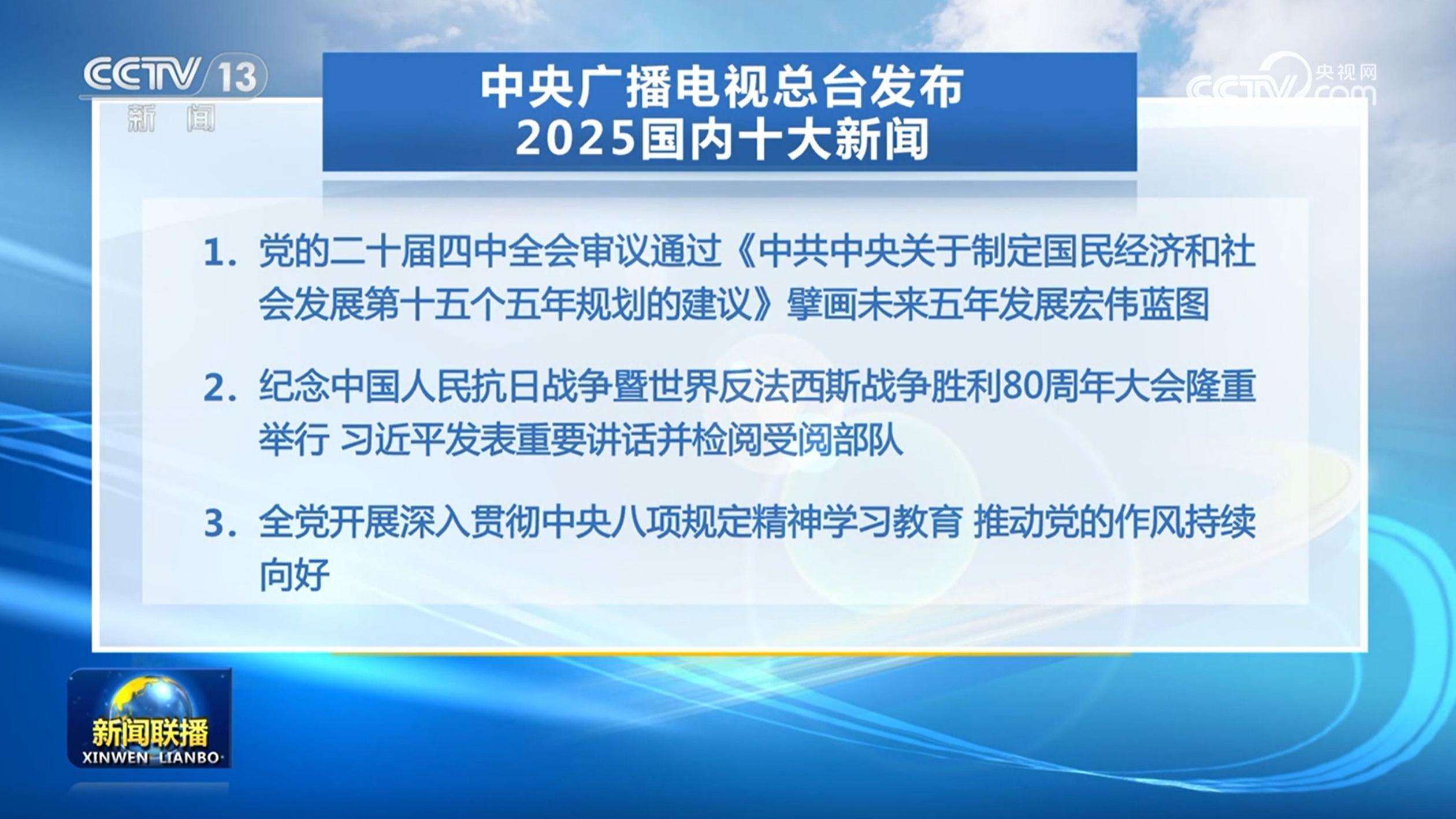 2. 中央广播电视总台发布2025国内十大新闻 国际十大新闻