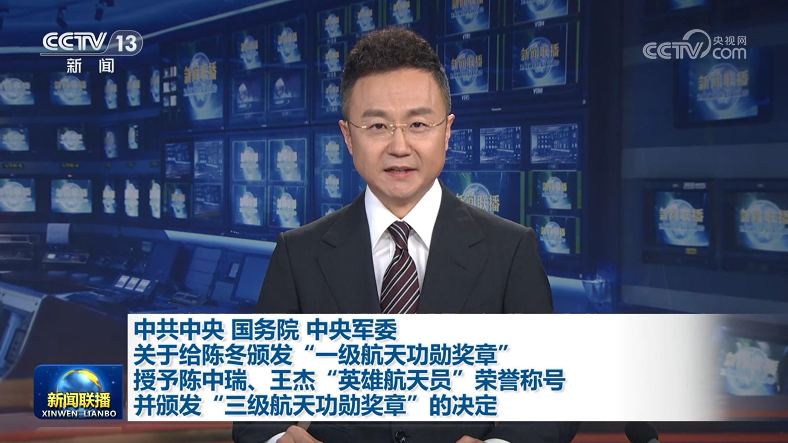 神舟二十号载人飞行任务的圆满成功,凝聚着广大科技工作者、航天员、干部职工、解放军指战员的智慧和心血。陈冬、陈中瑞、王杰同志是其中的杰出代表,他们一心向党、矢志报国,临危不惧、团结协作,向世界展示了强大的中国志气、中国骨气和中国底气。陈冬同志3次执行载人飞行任务、累计完成6次出舱活动,成为首个在轨驻留时间超过400天的中国航天员。陈中瑞同志坚毅果敢、勇挑重担,精心精细操作,首次飞天即稳妥完成3次出舱活动。王杰同志扎实训练、艰苦磨砺,光荣入选神舟二十号乘组,出色完成担负任务。为褒奖他们为我国载人航天事业建立的卓著功绩,中共中央、国务院、中央军委决定,给陈冬同志颁发“一级航天功勋奖章”,授予陈中瑞、王杰同志“英雄航天员”荣誉称号并颁发“三级航天功勋奖章”。