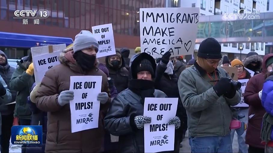 26日,美国明尼苏达州明尼阿波利斯市多地再次举行反对联邦执法人员暴力执法的抗议活动。在明尼阿波利斯市联邦政府大楼外等地,抗议民众表示,反对一项给美国移民与海关执法局增加经费的法案,同时呼吁参与联邦执法打击外来移民的边境巡逻队尽快离开当地。