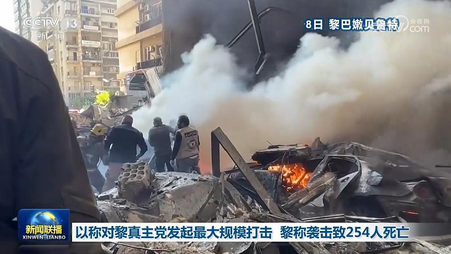 以色列国防军8日称,对黎巴嫩真主党实施本次冲突以来“最大规模打击”,在10分钟内对黎巴嫩首都贝鲁特、东部贝卡谷地和南部100多个黎巴嫩真主党指挥中心及军事目标实施空袭。