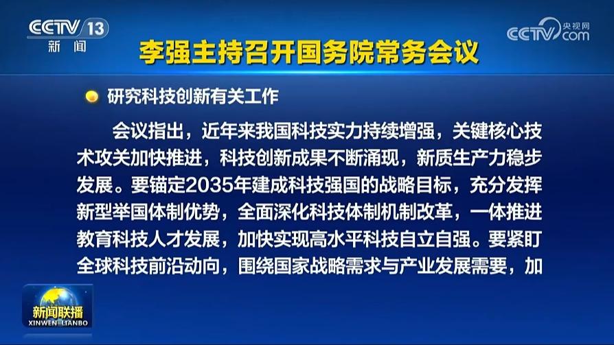 会议指出,近年来我国科技实力持续增强,关键核心技术攻关加快推进,科技创新成果不断涌现,新质生产力稳步发展。要锚定2035年建成科技强国的战略目标,充分发挥新型举国体制优势,全面深化科技体制机制改革,一体推进教育科技人才发展,加快实现高水平科技自立自强。要紧盯全球科技前沿动向,围绕国家战略需求与产业发展需要,加强原创性引领性科技攻关,提升基础研究水平,打造具有全球影响力的创新高地。要强化企业科技创新主体地位,支持有条件的企业参与重大科研项目、承担国家重大战略任务,带动产学研协同发展,促进科技创新和产业创新深度融合。